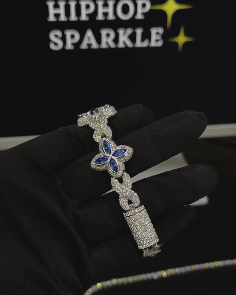 Each flower link is iced out with precision-set stones that catch the light from every angle, giving you unmatched shine and a rich, royal vibe. The unique blue and white contrast adds a sophisticated edge, perfect for artists, influencers, and jewelry lovers who want to flex in style.