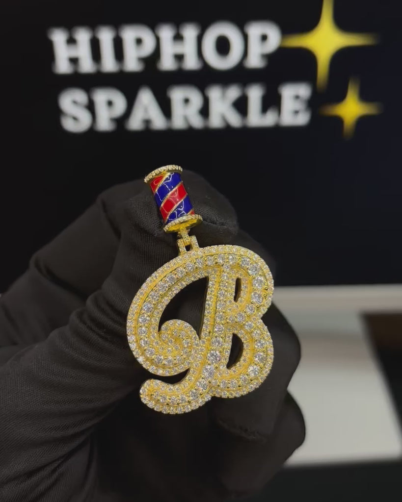 The custom enamel bail adds a personalized, colorful detail, making this pendant not just jewelry, but a true fashion statement. Whether worn with a Cuban link chain, rope chain, or tennis chain, this B pendant elevates any hip hop look with pure drip and style.