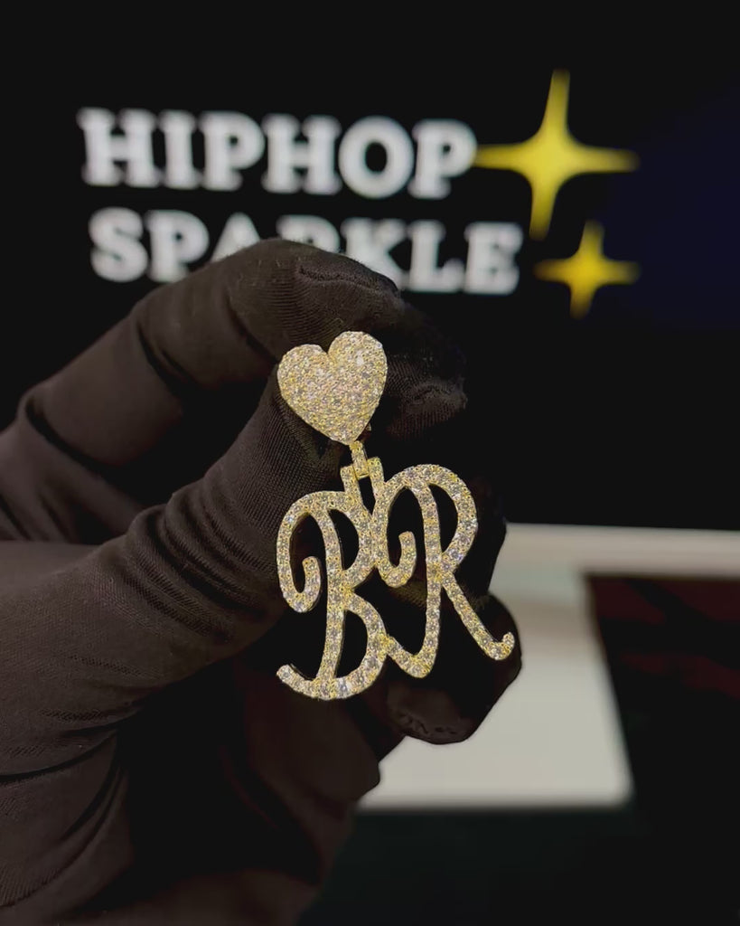 Show off your initials in style with this BR letter pendant, crafted in a 1.1-inch size for a sleek and wearable design. The pendant features a heart-shaped bail, adding a touch of unique elegance while keeping the iced out hip hop jewelry vibe alive.