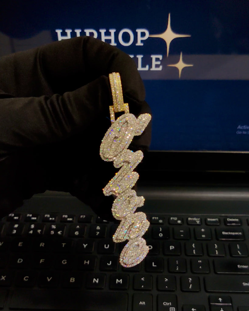 Turn your name into luxury with this fully iced-out custom name pendant, handset with VVS Moissanite diamonds that hit with maximum shine.
