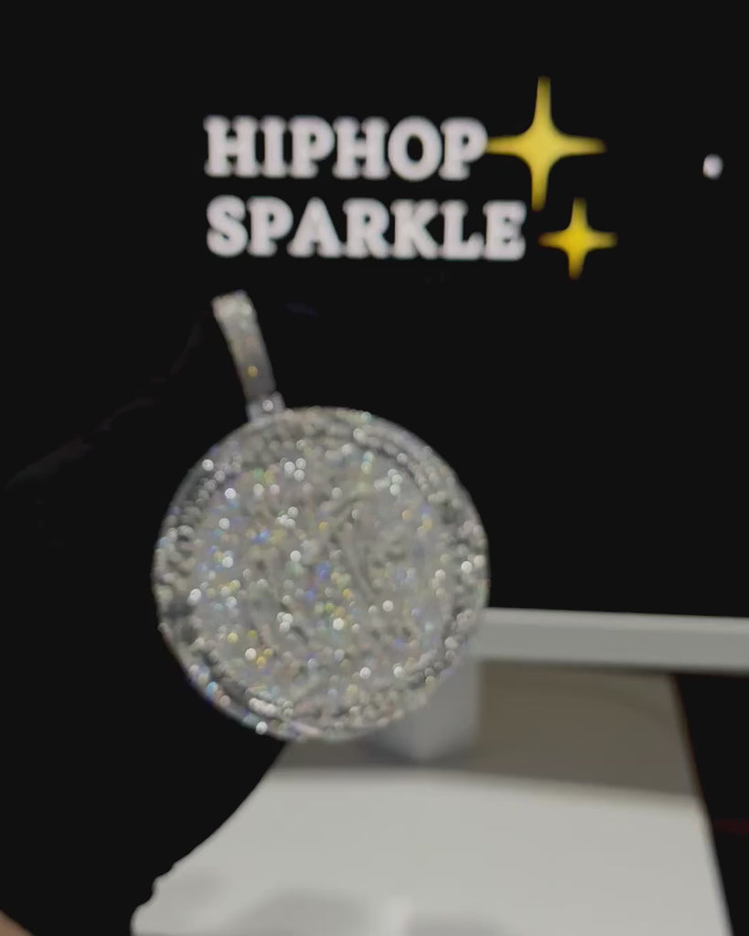Created on a solid 925 sterling silver base, the entire surface is flooded with VVS Moissanite diamonds, giving the pendant unmatched brilliance and guaranteed tester-pass performance.