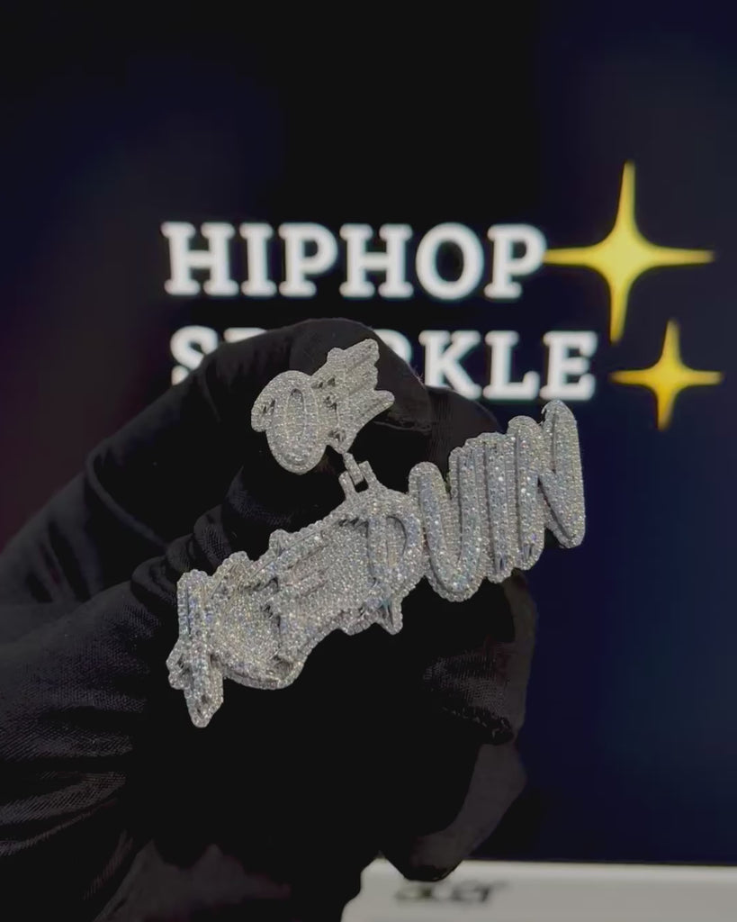 Perfect for hip hop artists, influencers, or anyone looking to flex a high-end, custom iced-out name piece.