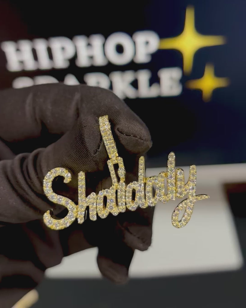 Turn your name into a statement with the Shaidaly Custom Name Pendant, crafted for those who love bold and luxury hip hop jewelry. This pendant is iced out with sparkling VVS moissanite diamonds, delivering unmatched brilliance and shine that rivals real diamonds.