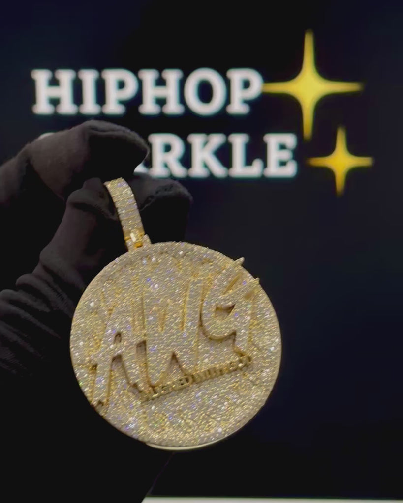 Stand out with this bold and meaningful AWG – Aligned With God custom round pendant, fully flooded with premium VVS Moissanite stones for unstoppable shine.