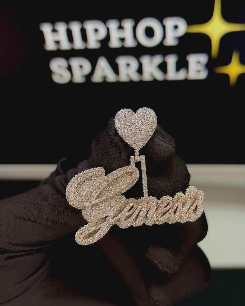 The heart-shaped bail adds a touch of love and sophistication, while the pendant itself is fully iced with VVS Moissanite diamonds, delivering a flawless sparkle from every angle. At 2 inches in size, it’s the perfect balance of bold statement and wearable fashion.