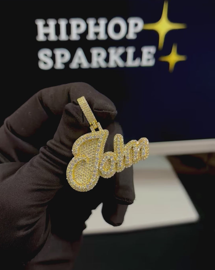 Make a bold statement with the John Custom Name Pendant, measuring 1.8 inches. Crafted with high-quality silver for that perfect iced out shine, this pendant is a must-have for fans of hip hop chains, custom name jewelry, and moissanite jewelry.