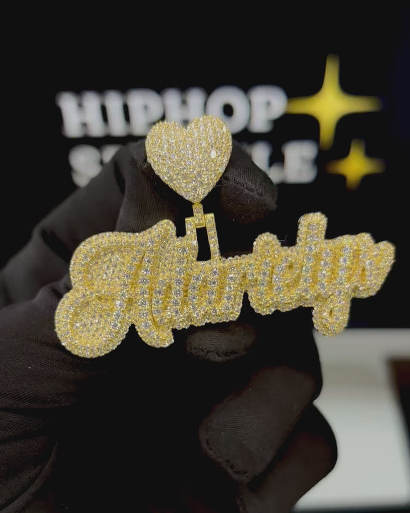 Stand out with the elegant Adarielys Custom Name Pendant, designed in a double-layer cursive style for extra depth and shine. Crafted in 14K gold plating over 925 sterling silver and fully iced out with VVS moissanite diamonds, this pendant is a true hip hop jewelry masterpiece.