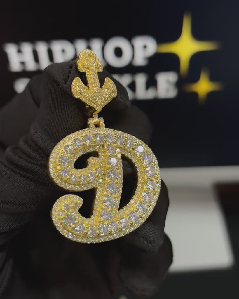 Make your initial shine with the Custom “D” Letter Pendant, a bold double-layer design crafted for maximum brilliance. This pendant is fully iced out with VVS moissanite diamonds, giving it the same sparkle and fire as natural diamonds – perfect for hip hop jewelry lovers.