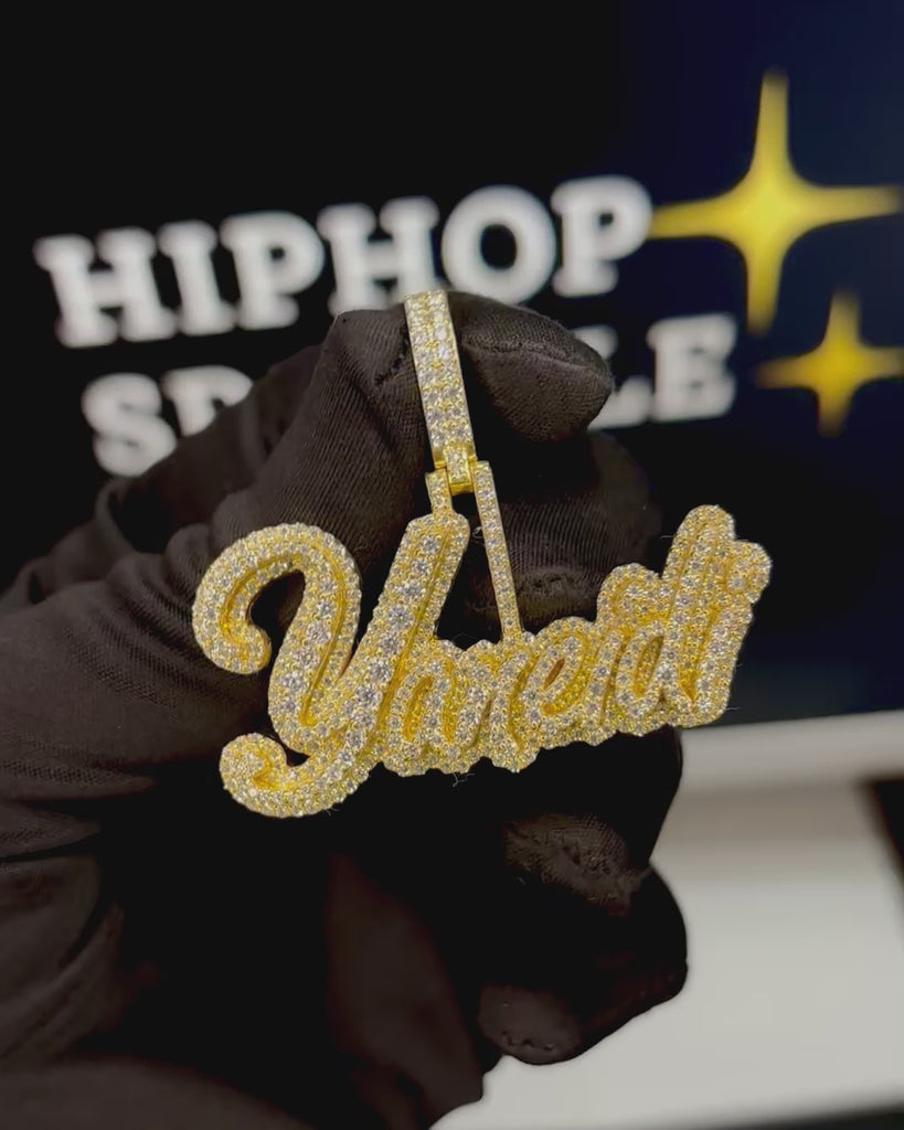 Flex your style with the Yaneidi Custom Name Pendant, crafted in 925 sterling silver and fully iced out with VVS Moissanite diamonds for an incredible shine. This pendant is designed for hip hop jewelry lovers, rappers, and bling fans who want a bold, standout piece.