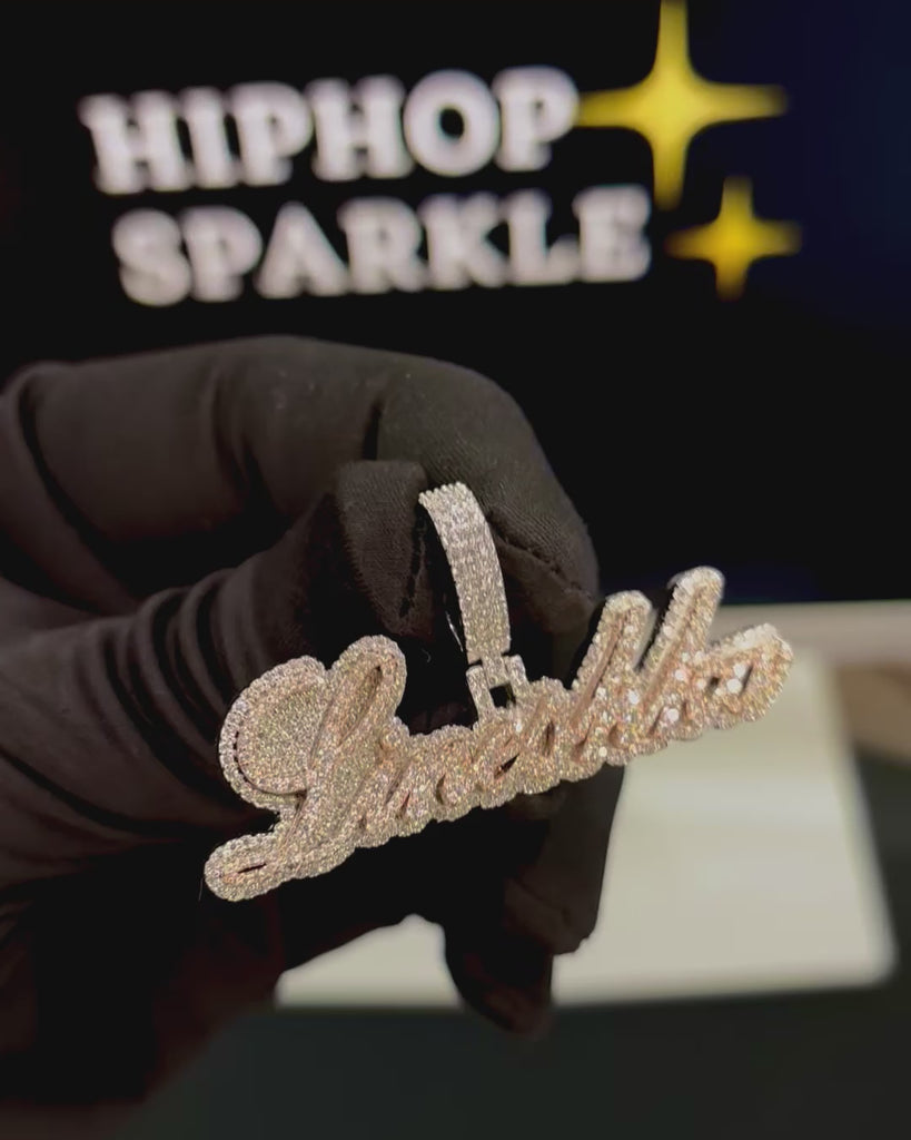 Shine bright with the Lineshka Custom Name Pendant, a bold hip hop statement piece crafted with elegance and precision. Featuring a luxurious two tone finish of rose and white, this pendant delivers the perfect mix of classic and modern style.